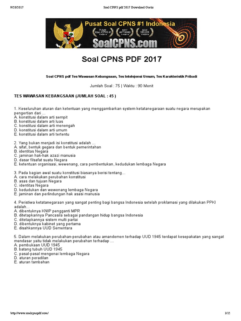 Kita tahu bahwa tak lama lagi akan di. Download soal dan jawaban tes cpns gratis. Contoh soal cpns 2018 pdf wawasan kebangsaan. Soal cpns ini merupakan kumpulan dari soal cpns 2018 pdf, soal cpns 2019 pdf, dan soal cpns 2020 pdf. Tahun ini pemerintah telah resmi membuka lowongan cpns 2019.
